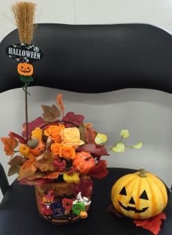 先日……毎月行ってるお花のレッスンも花材がハロウィンでした^_^